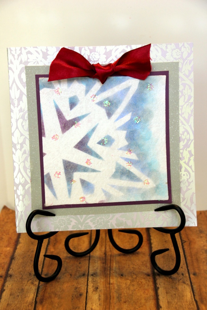Shake off your excess glitter and then frame the snowflake by layering it onto a different colored cardstock.