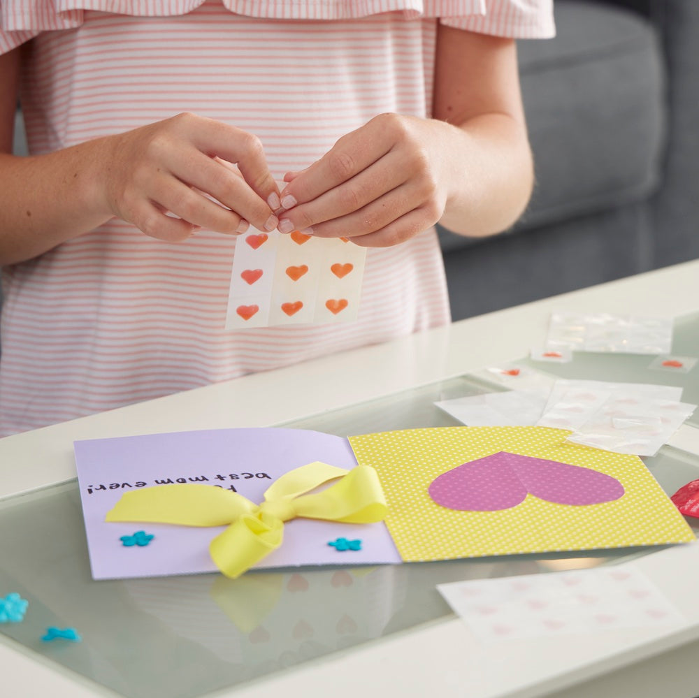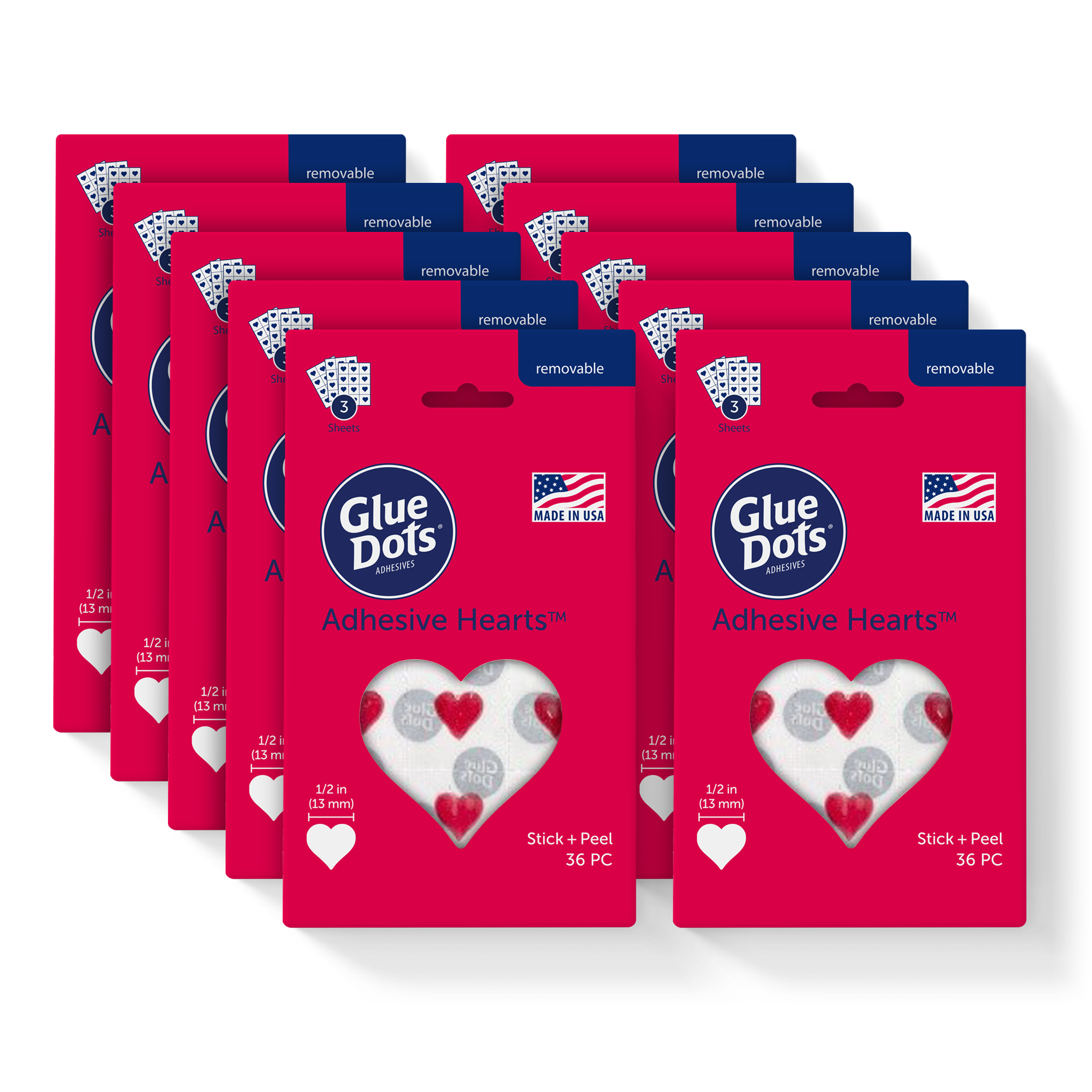 You are going to LOVE these adorable red Adhesive Hearts™ to attach embellishments, candies, Valentines, Mother's Day cards, frames, birthday gift boxes, scrapbook pages and more! Just Stick and peal these removable heart shaped adhesives to make someone you LOVE happy. This 10-pack includes: 3 - 12 count Sheets of ½” diameter hearts per pack for a total of 360 hearts. Perfect for home or school. A perfect gift to include with your Valentine or bring as classroom party favors!
