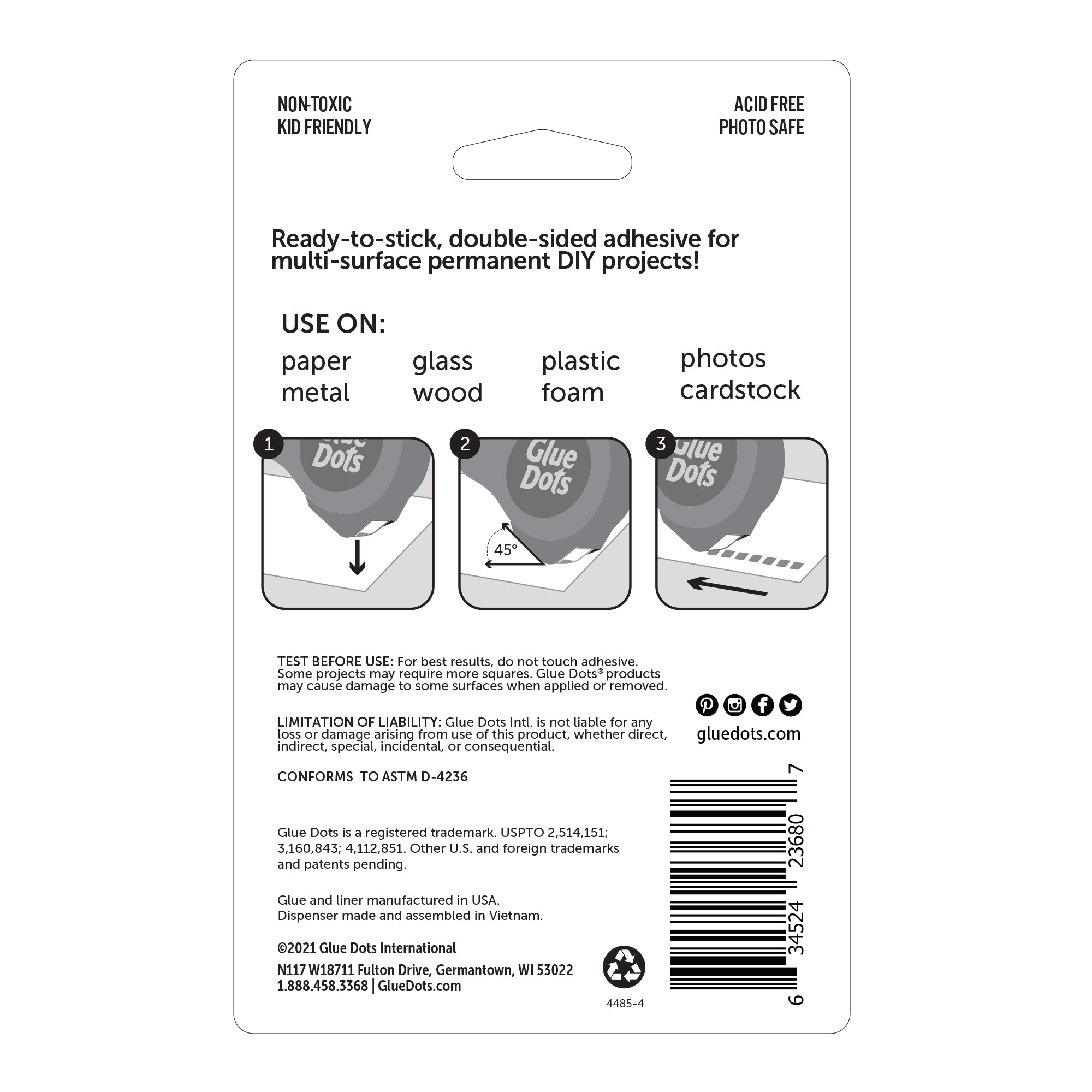 Permanent Glue Squares dispense easily and provide versatile adhesives for a multitude of craft, school, hobby, and art projects. The Dot N' Go dispenser allows for easy application on most surfaces. This dispenser includes 450 Permanent Squares that are 3/16" each in size. This instant stick adhesive can be used for decorating vases, creating stained glass projects, and building abstract works of art.