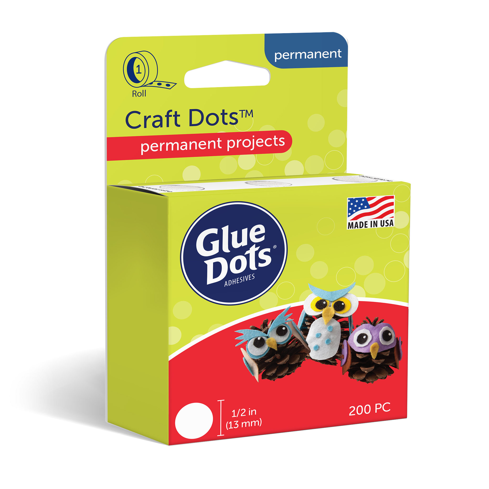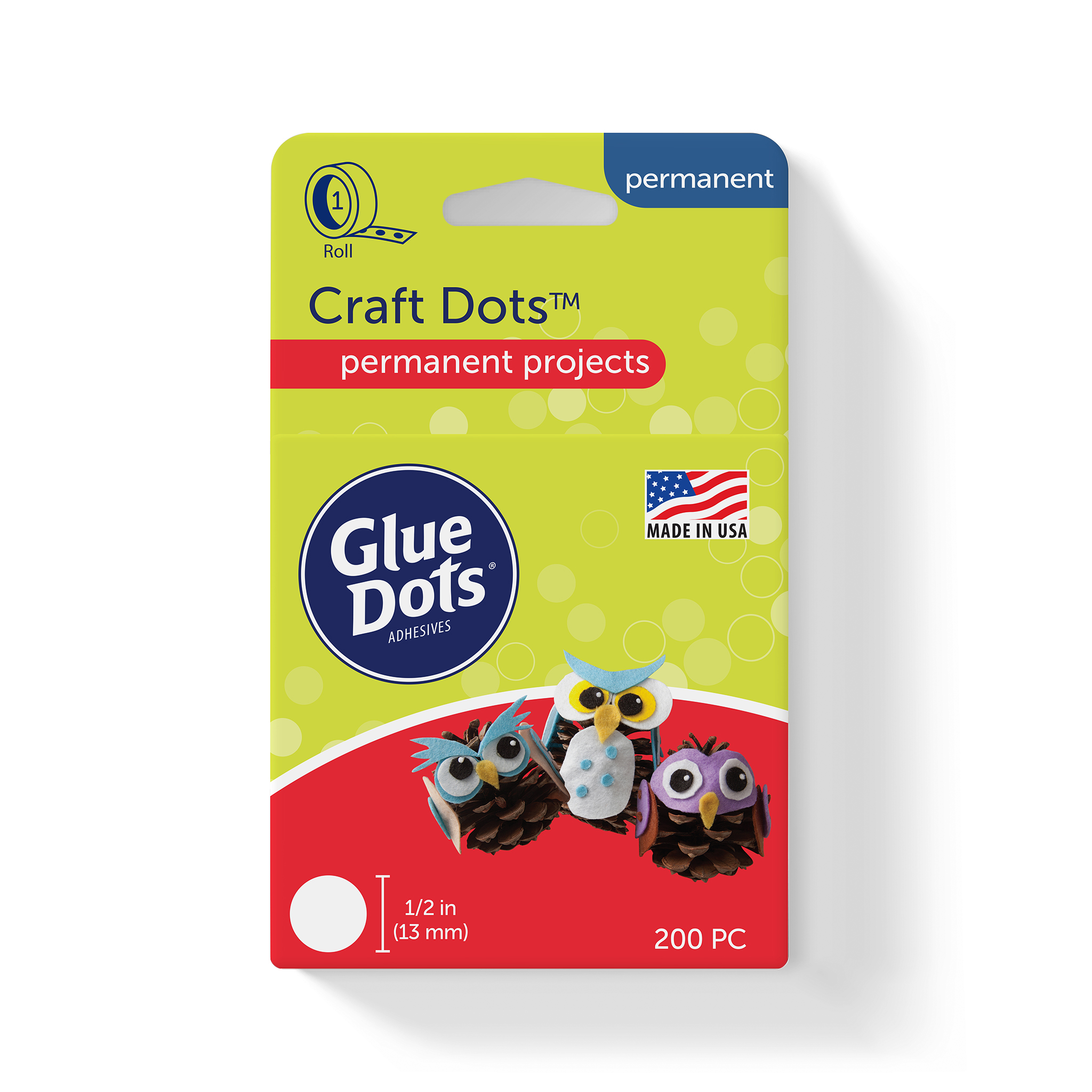 Craft Dots are versatile adhesive dots for a multitude of craft, school, hobby, and art projects. This 200-count roll of 1/2" diameter Craft Dots is perfect for Kid's Crafts, Paper Crafts, Scrapbooks, Cards, School Projects, and more