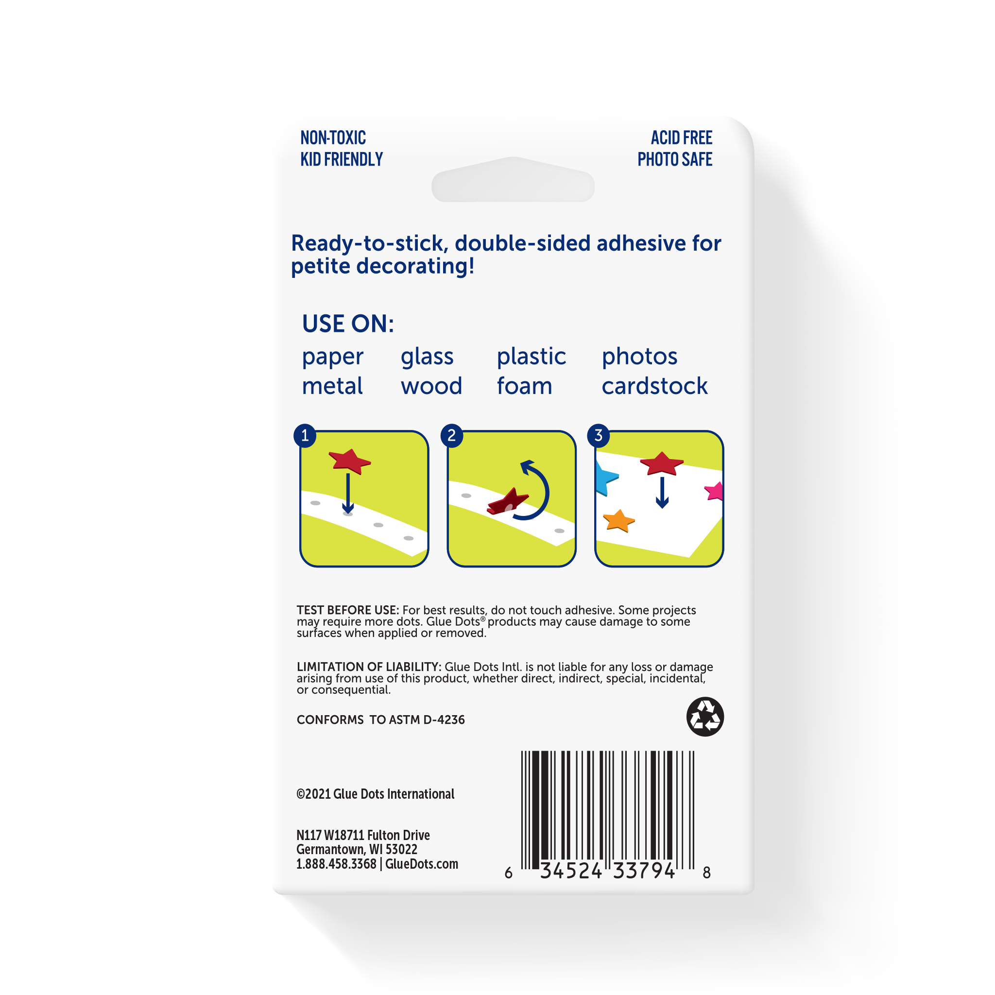 Glue Dots bond fast to a wide range of materials, and works best on: